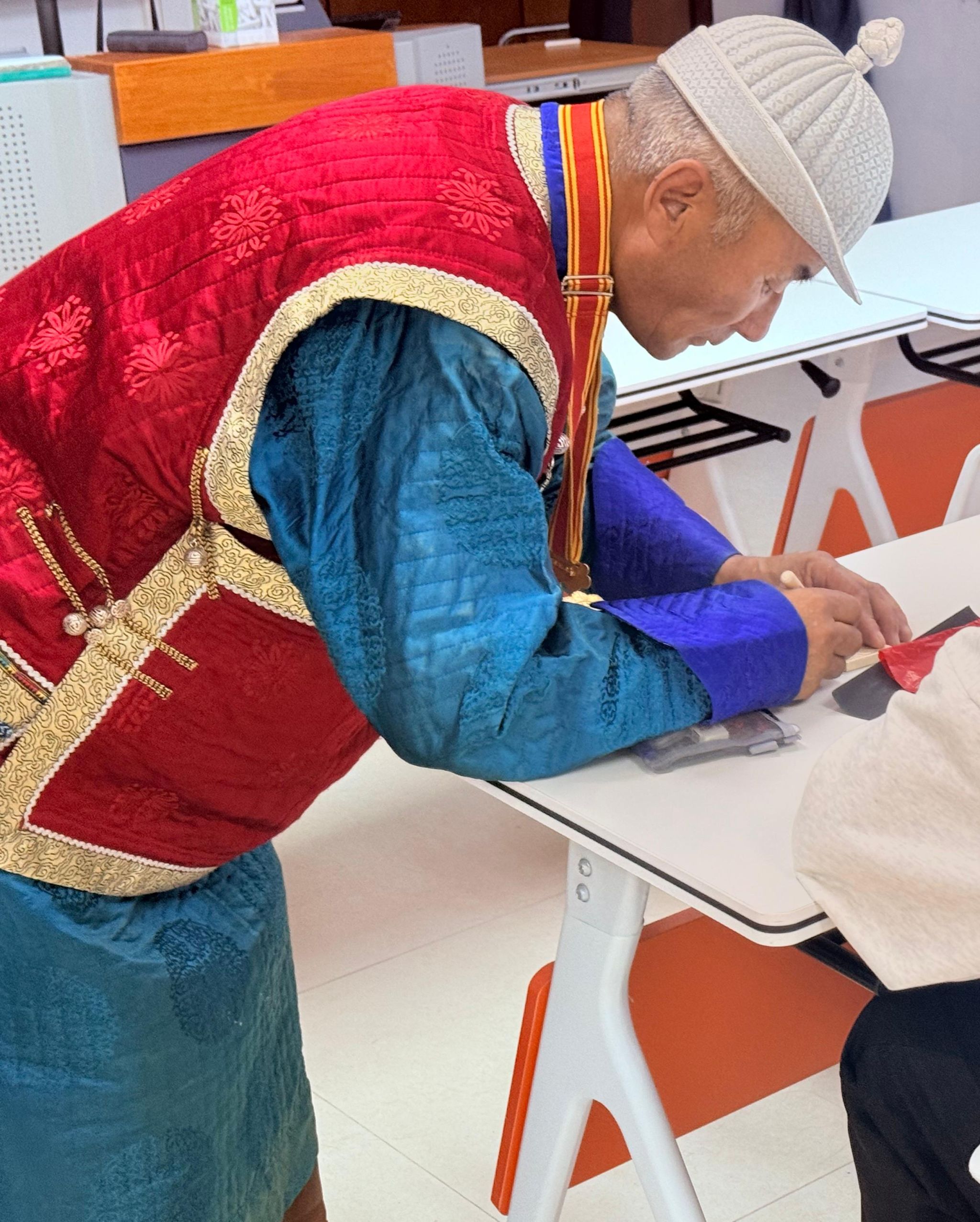 巴达日呼,蒙古族,1963年1月生,内蒙古锡林郭勒盟东乌珠穆沁旗人,2019年获评自治区级木雕非遗传承人,也是多协会会员。2024年为东乌旗综合高中310人次授木雕课,还持续向66名徒弟传授木雕核心技艺。